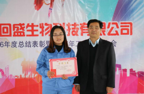 最后,大會對2016年度先進個人進行了表彰,頒發了“安全生產獎、回盛核心價值觀(高效、務實、合作、創新)獎、優秀黨務工作者獎、最佳新人獎、三年五年功勛獎、勞模獎等獎項,公司高管為獲獎個人頒發榮譽證書和獎品。