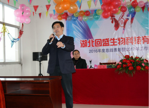 接著,回盛股份副總經理劉潔先生代表股份公司向全體員工致以新春祝賀、肯定了2016年湖北回盛的成績,并對2017年湖北回盛的工作規劃做了指示。
