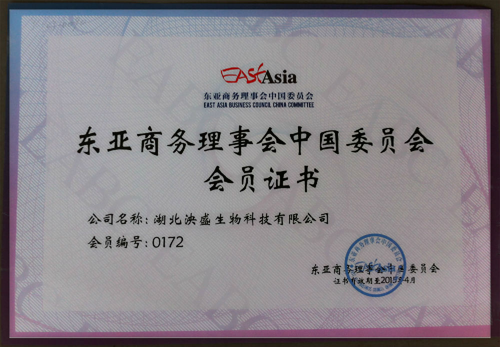 東亞商務理事會會員證書