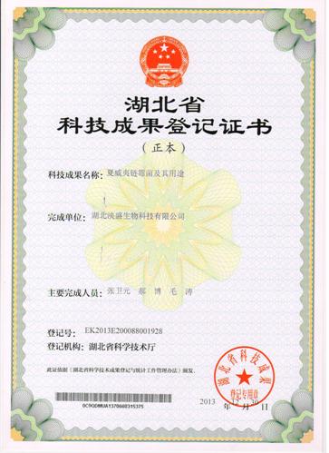 湖北省科技成果登記證書