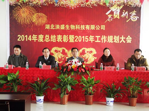 2015年1月22日,泱盛公司2014年終總結表彰暨2015年工作規劃大會隆重召開,公司全體員工歡聚一堂,總結過去,展望未來。回盛股份研發總監劉潔先生、回盛股份總工程師劉國慶先生、回盛股份質量總監項鄞女士及公司高管出席了會議。