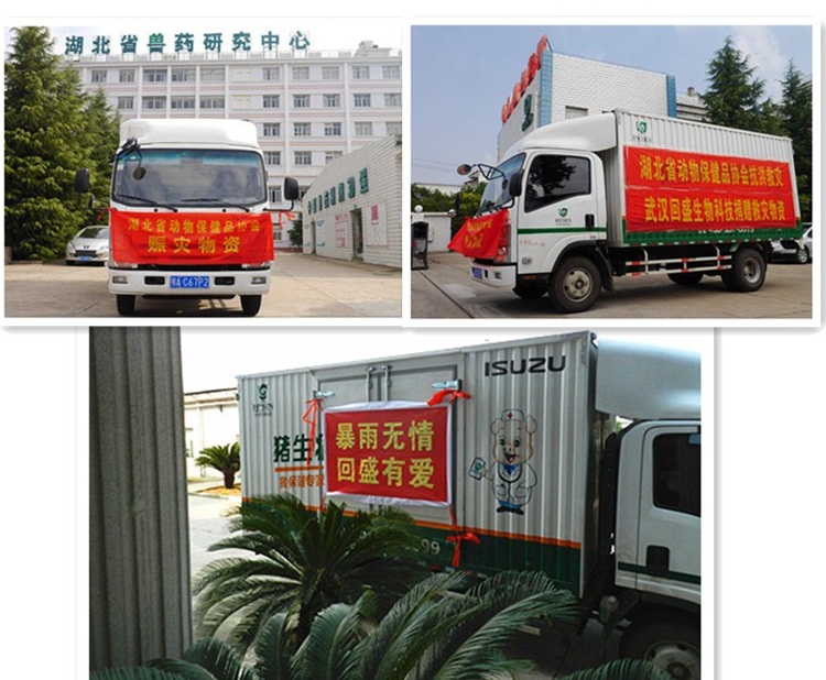同時(shí),由于多地豬場(chǎng)被淹,損失慘重,因?yàn)?zāi)致死的畜禽尸體無(wú)害化處理壓力劇增。在此危急情況之下,回盛公司為幫助洪澇災(zāi)區(qū)養(yǎng)殖戶(hù)盡快恢復(fù)生產(chǎn),渡過(guò)難關(guān),緊急調(diào)撥4噸近萬(wàn)瓶消毒藥品運(yùn)往災(zāi)區(qū)養(yǎng)殖戶(hù)手中。