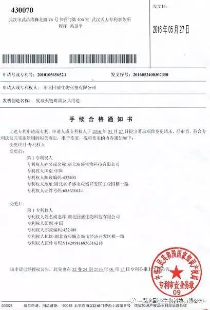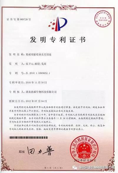 近日,從國家知識產權局傳來喜訊,應城市知識產權局組織申報的湖北回盛生物科技有限公司發明專利“夏威夷鏈霉菌及其用途”(ZL2010105652.1)榮獲第十九屆中國發明專利優秀獎。